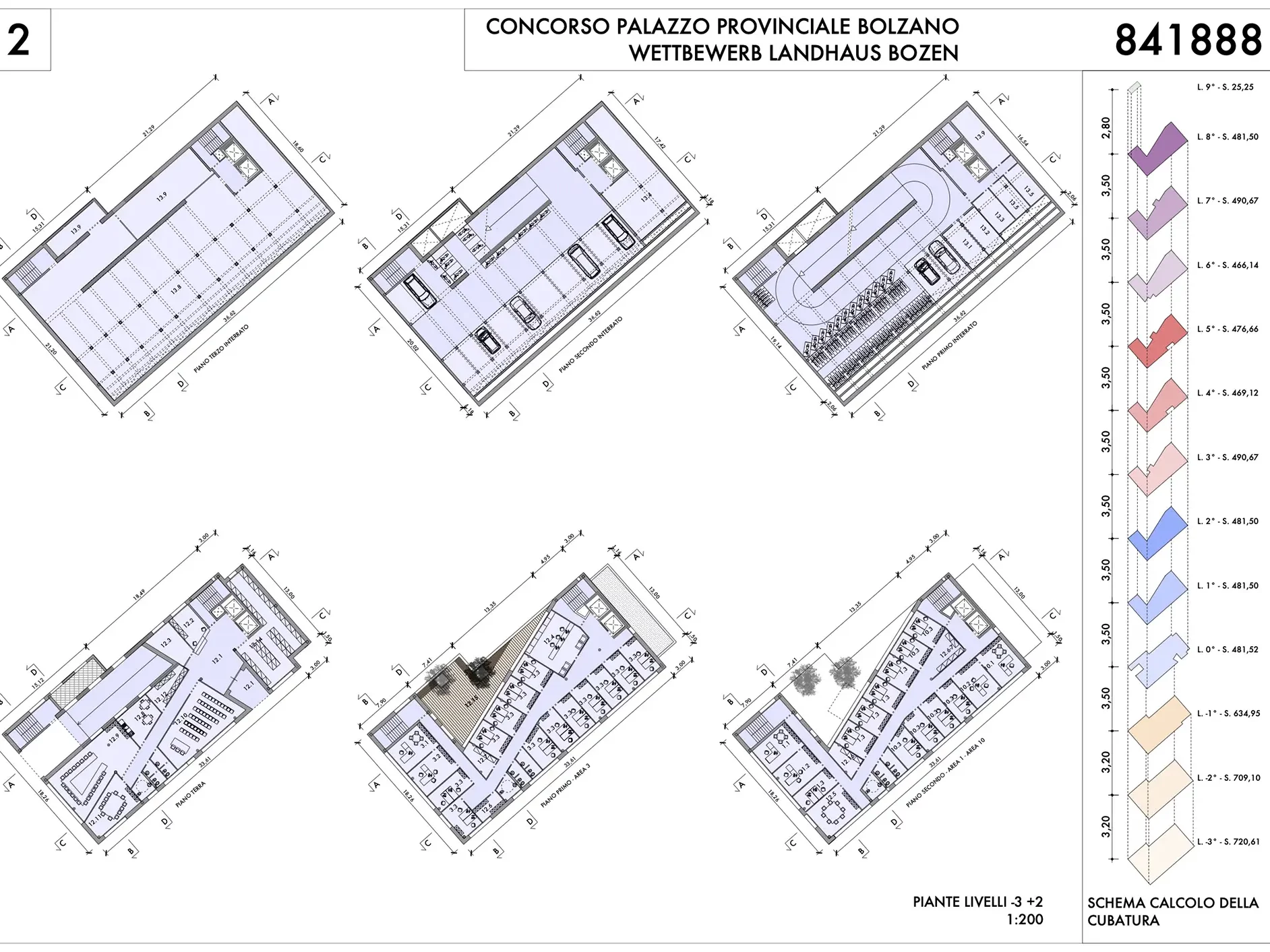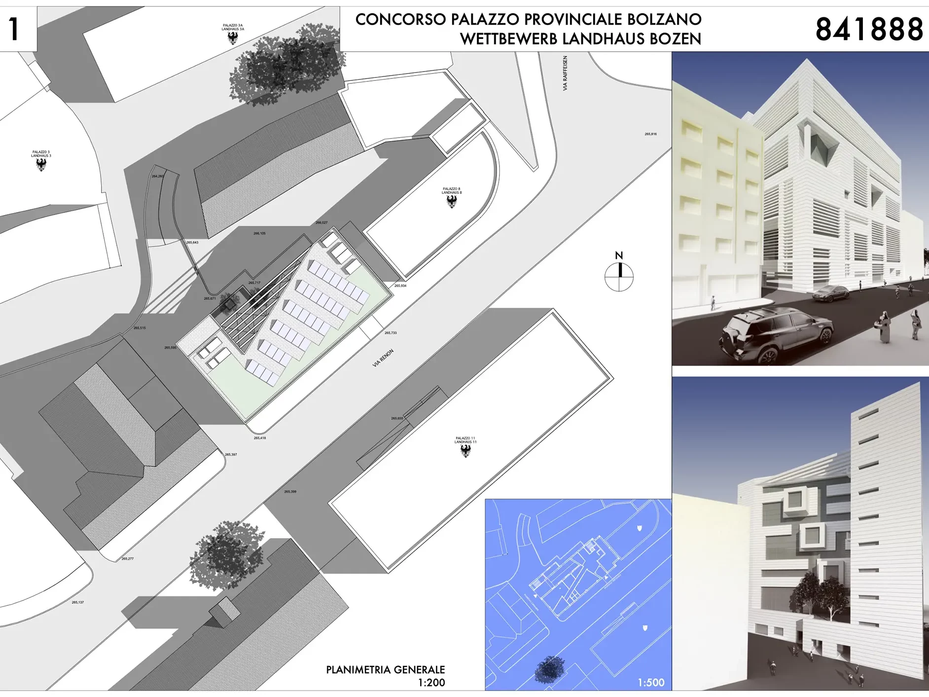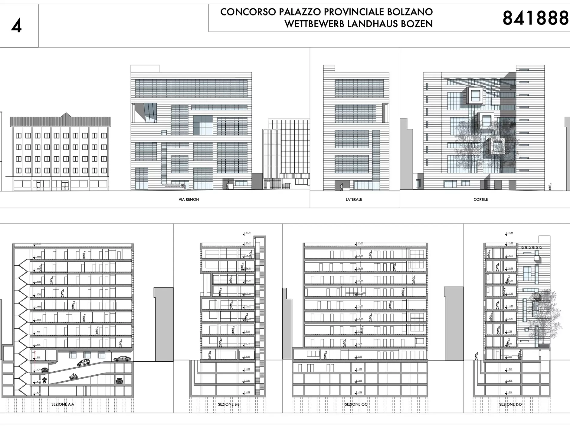 Il primo obiettivo che ci si è posti, nell’affrontare questo tema progettuale, riguarda gli aspetti bioclimatici del nuovo edificio: l’orientamento di via Renon, NE-SO fa si che la facciata principale si sviluppi sull’allineamento Sud Est, sufficientemente buono, così come il contiguo lato Sud Ovest.