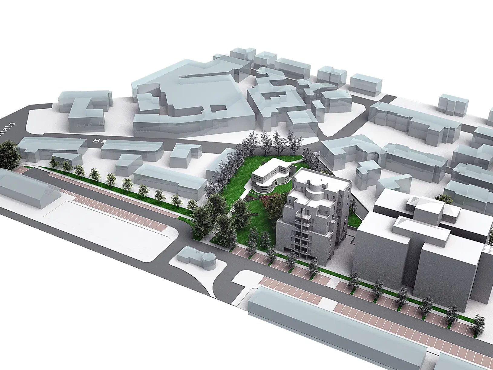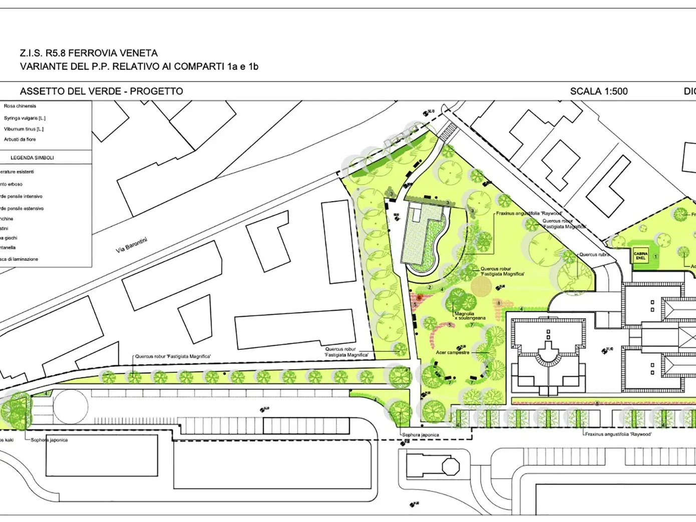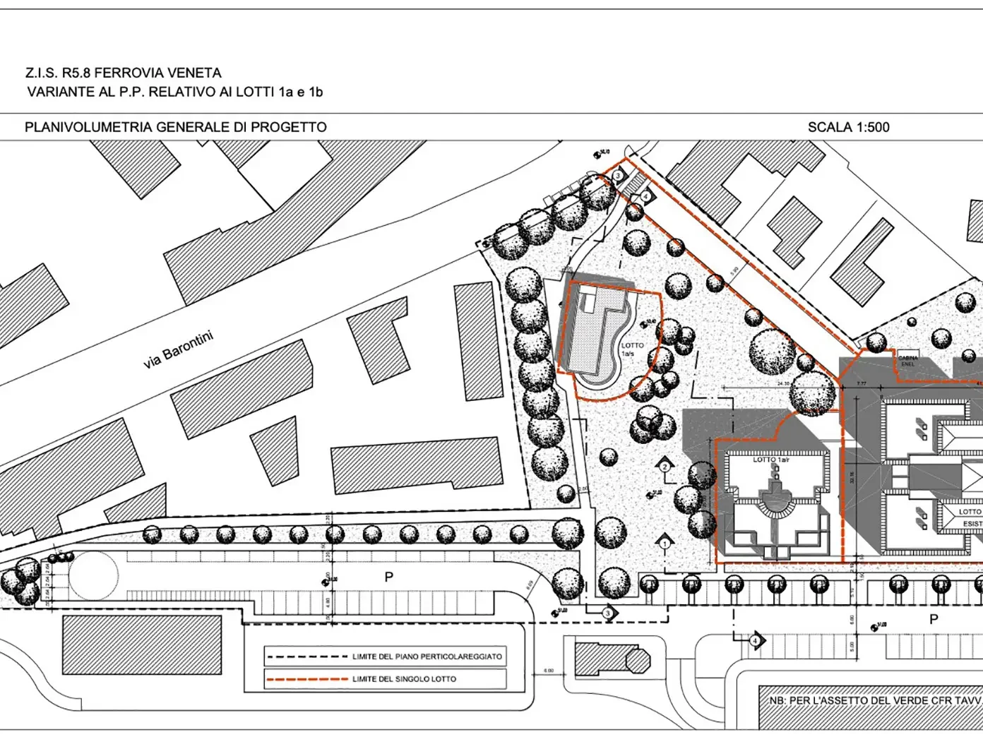 Variante al piano particolareggiato che ha previsto una drastica diminuzione della Superficie Utile realizzabile, a fronte di un aumento della superficie verde, dell’inserimento all’interno del Parco Pubblico di una dotazione di Superficie Utile di Standard ad Uso Pubblico ed all’eliminazione del parcheggio interrato.