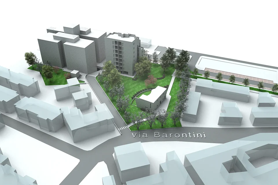 Variante al piano particolareggiato che ha previsto una drastica diminuzione della Superficie Utile realizzabile, a fronte di un aumento della superficie verde, dell’inserimento all’interno del Parco Pubblico di una dotazione di Superficie Utile di Standard ad Uso Pubblico ed all’eliminazione del parcheggio interrato.